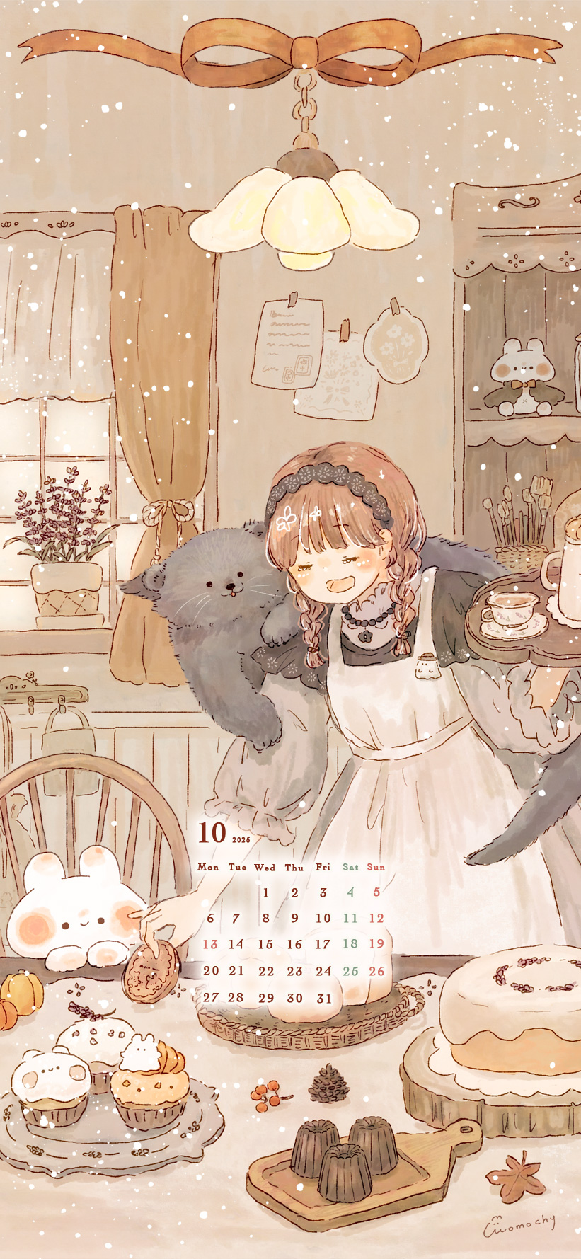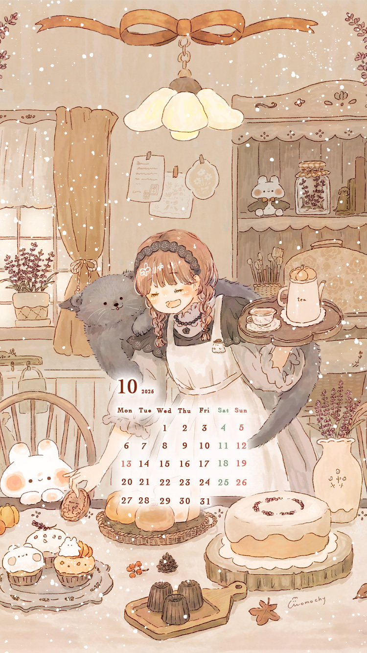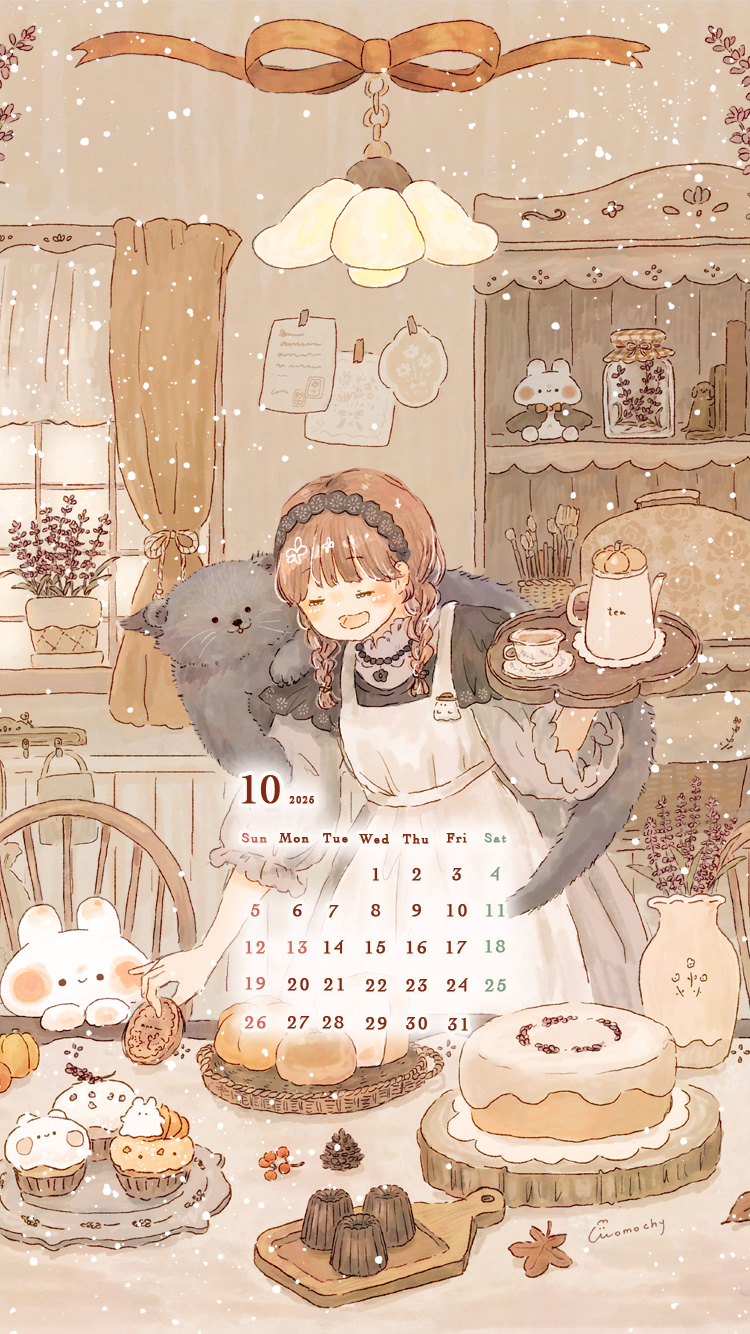 ロック画面や待ち受け・スマホ壁紙に使える*2024年10月のカレンダーイラスト