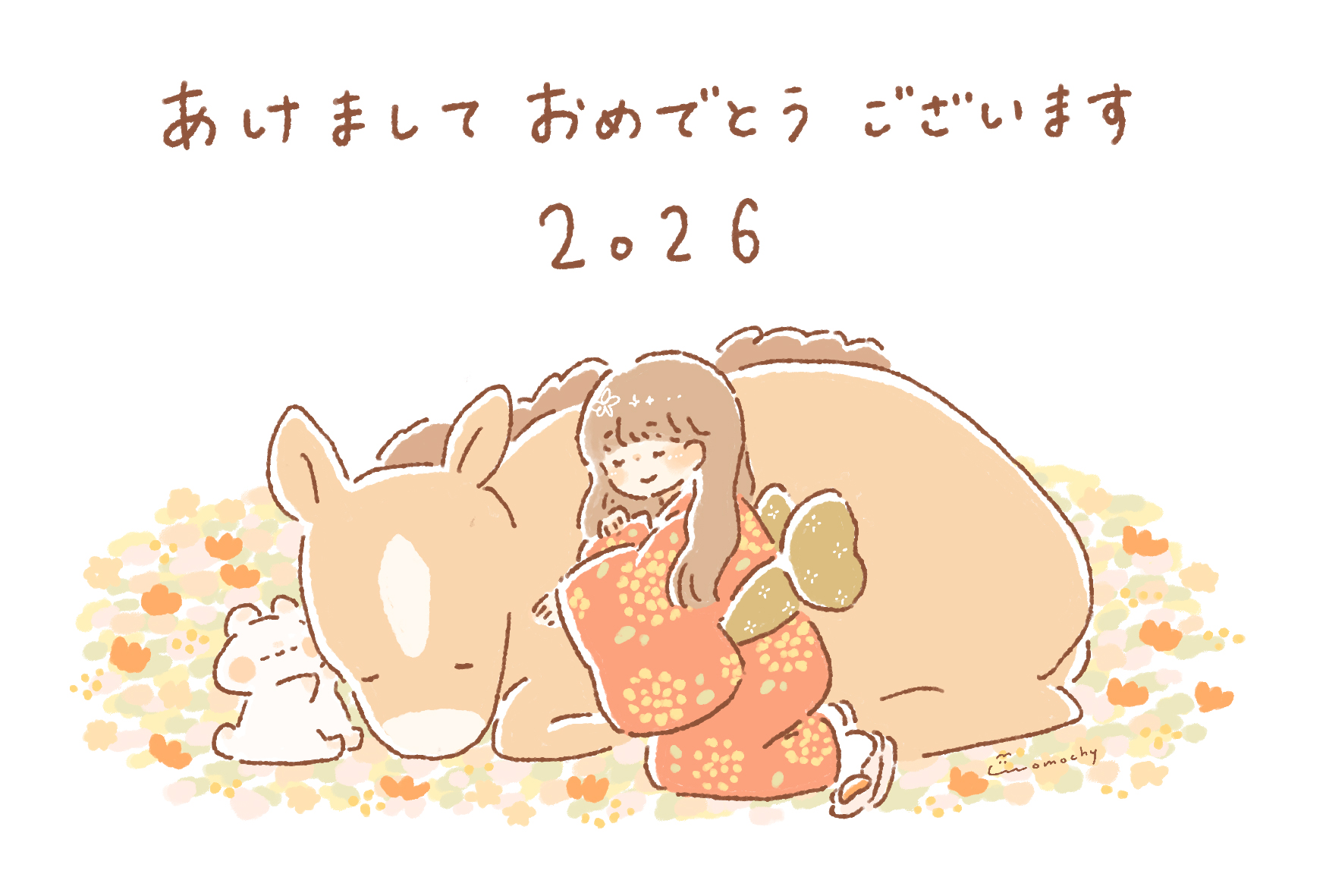6:寝ている馬と着物の女の子とうさぎ(横)