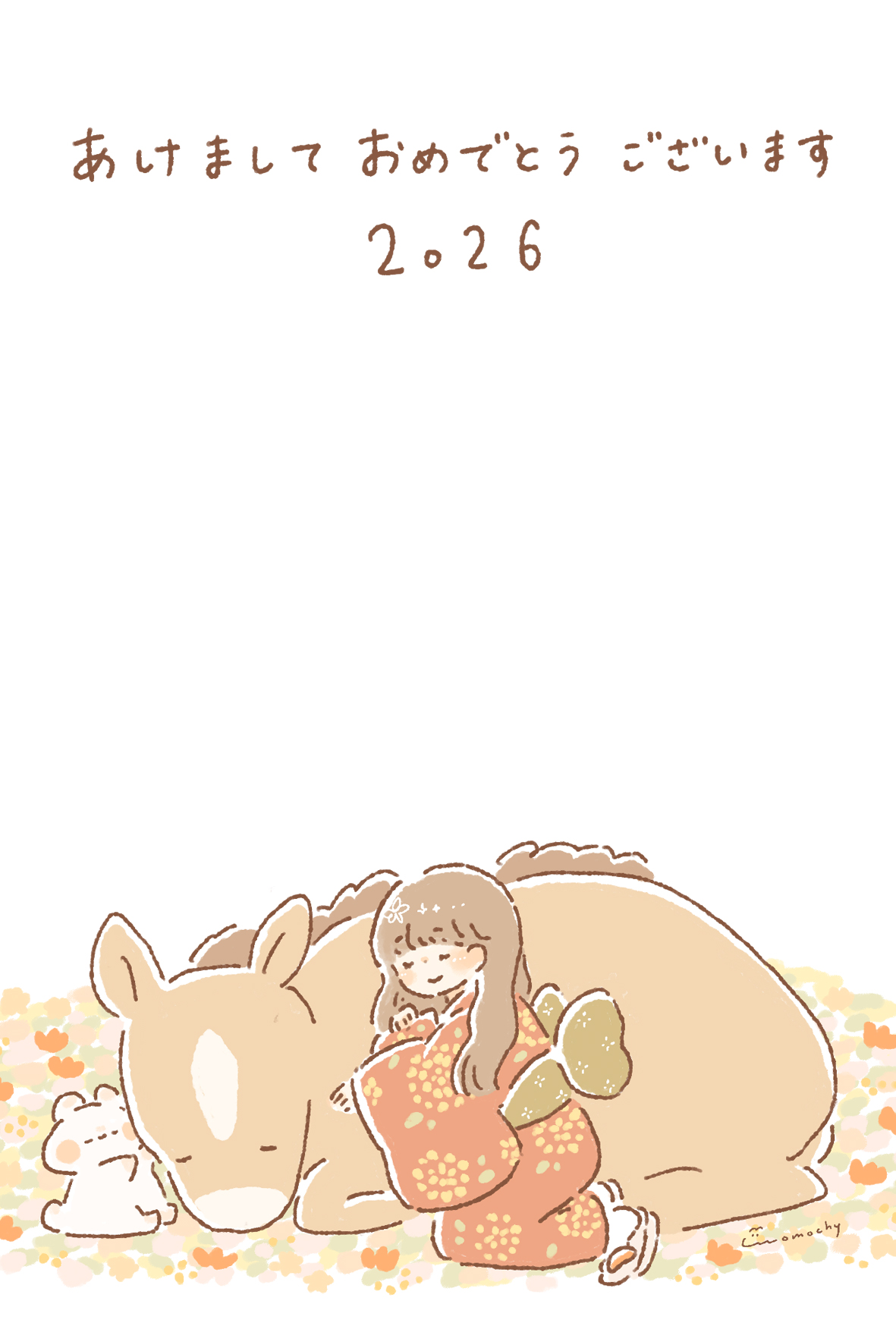 5:寝ている馬と着物の女の子とうさぎ(縦)