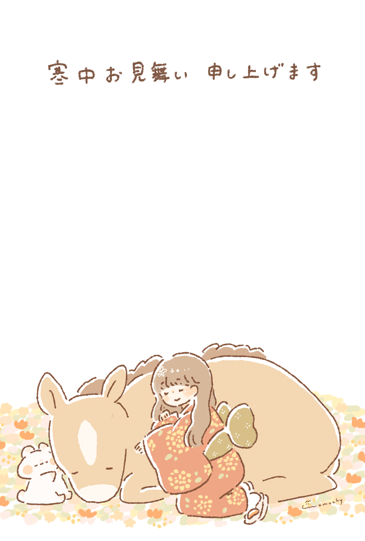 5:寝ている馬と着物の女の子とうさぎ(縦)