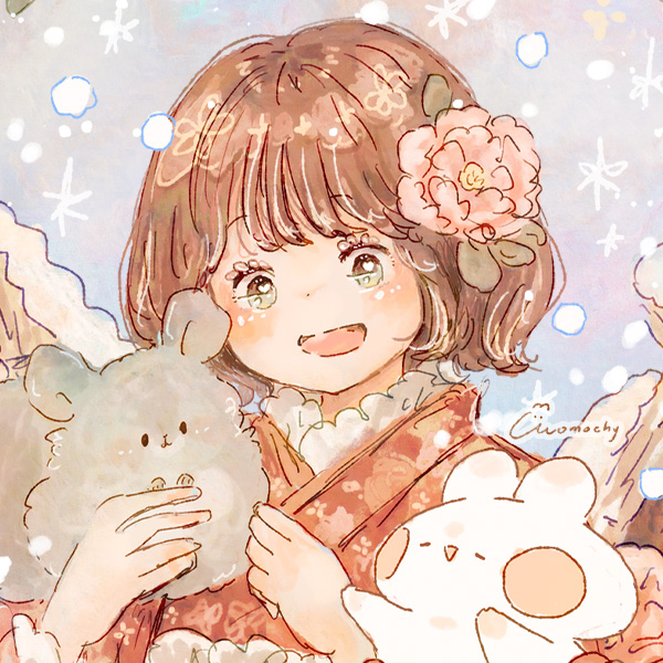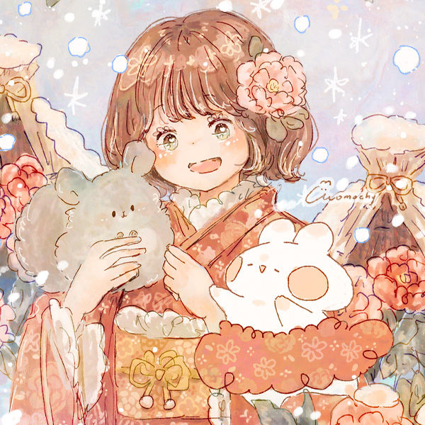 冬牡丹とチンチラと女の子を描いたイラストのフリーアイコンです。