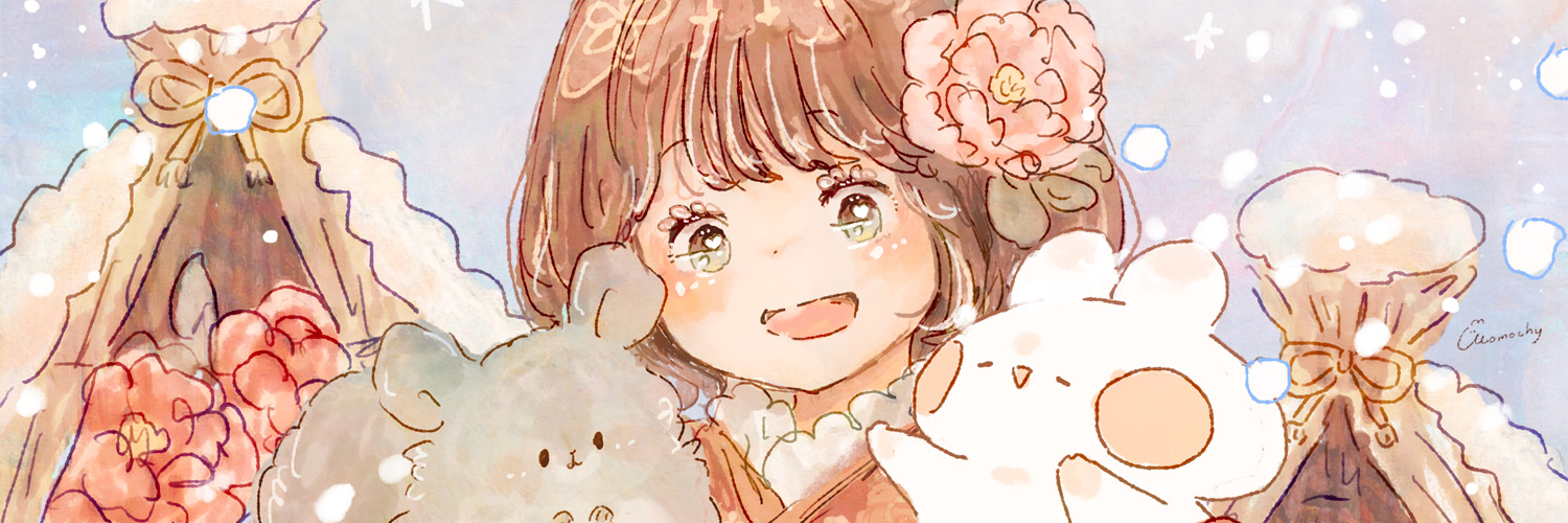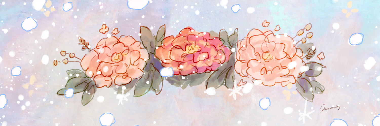 冬牡丹とチンチラと女の子を描いたイラストのフリーヘッダーです。