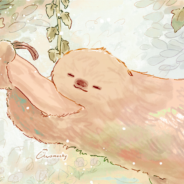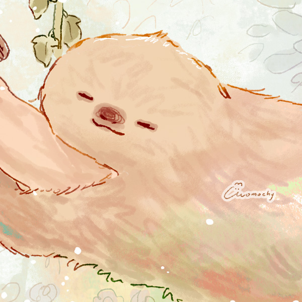 ラナンキュラスとフタユビナマケモノと女の子を描いたイラストのフリーアイコンです。