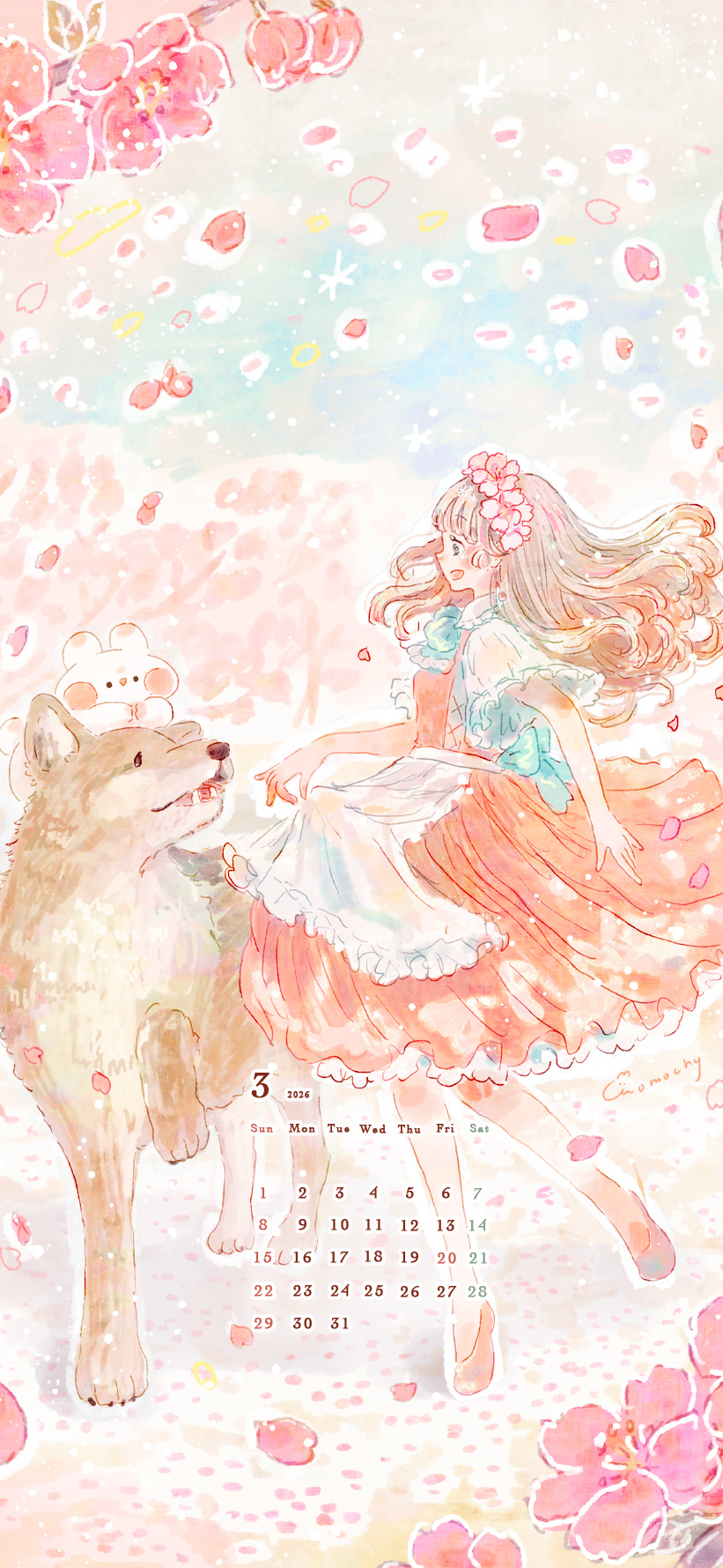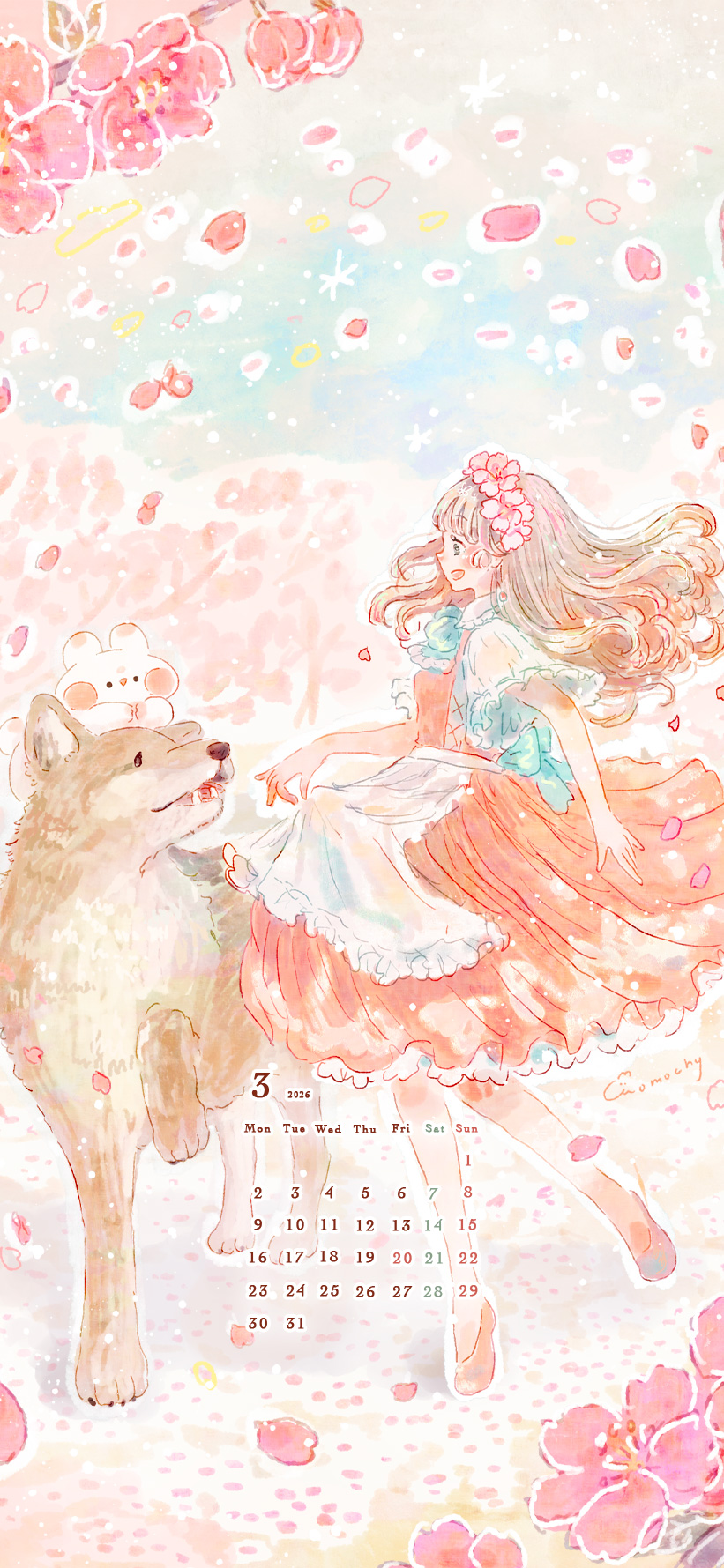 ロック画面や待ち受け・スマホ壁紙に使える*2024年3月のカレンダーイラスト