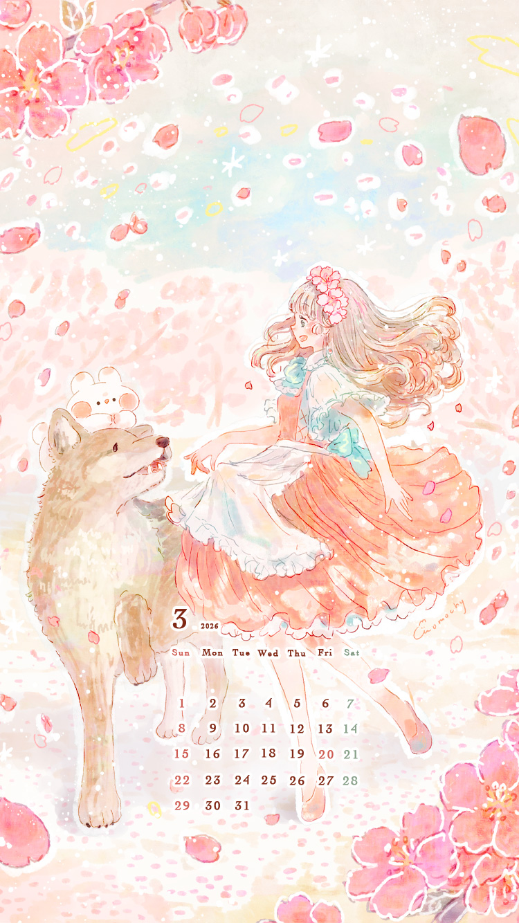 ロック画面や待ち受け・スマホ壁紙に使える*2020年3月のカレンダーイラスト